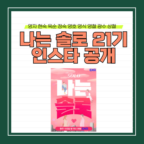많은 사람들의 관심 속에 나는 솔로 21기가 시작되었습니다. 나는 솔로 20기는 한 명의 큰 움직임이 있었다면 이번 나는 솔로 21기는 모두가 개성 넘치는 캐릭터라 더 흥미진진하지 않을까 예상해 봅니다. 나는 솔로 21기 인스타 주소 및 여타 정보 등을 알려드리겠습니다.