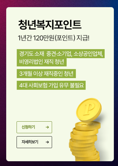 경기도 청년복지포인트는 경기도 소재 중소기업 및 중견기업 또는 소상공인 업체, 비영리법인에 재직 중인 청년들을 지원하는 제도입니다. 일정기간 성실하게 근무한 사람에게 적용되는 지원제도라고 생각하면 이해가 쉽습니다.